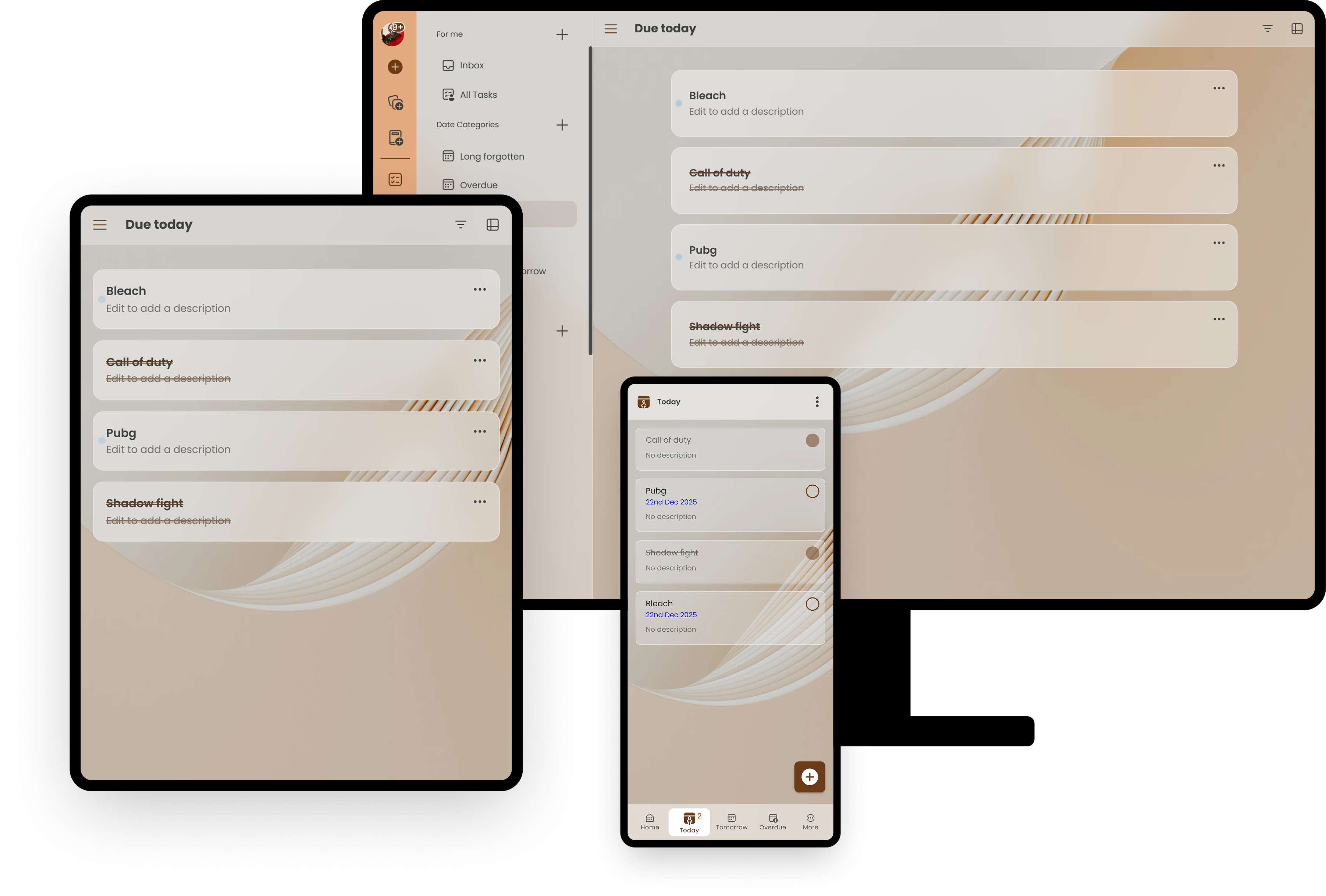 Mark Done is designed to help you stay organized while still having fun 👌. The goal is simple: manage your to-do list using a design that feels personal to you. With real-time updates, task prioritization, and custom categories, getting things done becomes something you actually enjoy.